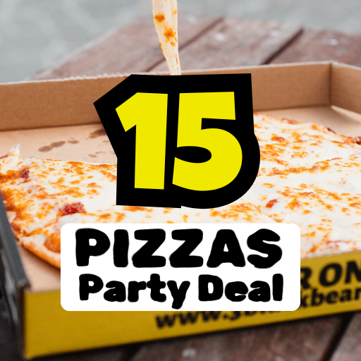 15 PIZZAS PARTY DEAL$259The ultimate party potion for bigger crowds. Whether you’re fueling a haunted house crew or keeping the whole coven happy, the 15 Pizza Party Deal delivers 15 pizzas worth howls of delight. Add sides and drinks to make it a full moon feast!