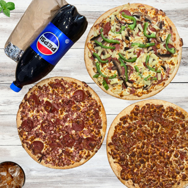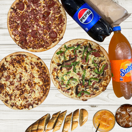 Family Meal Deal$452 Large Pizzas + 1 Garlic Bread + 1.25L Drink