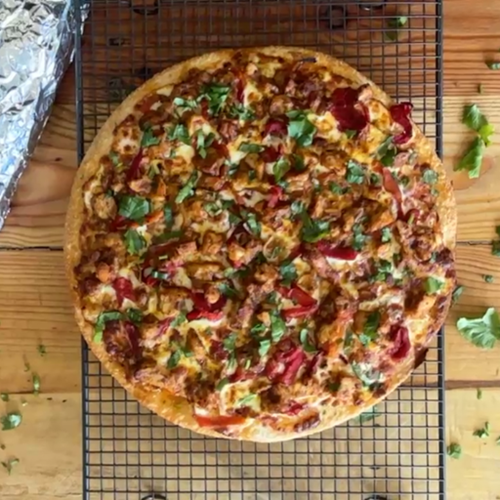 NEW!$19.90Butter Chicken PizzaNEW Butter Chicken Pizza with a Tomato base, topped with onion, mozzarella cheese, capsicum & marinated butter chicken. Garnished with coriander.×