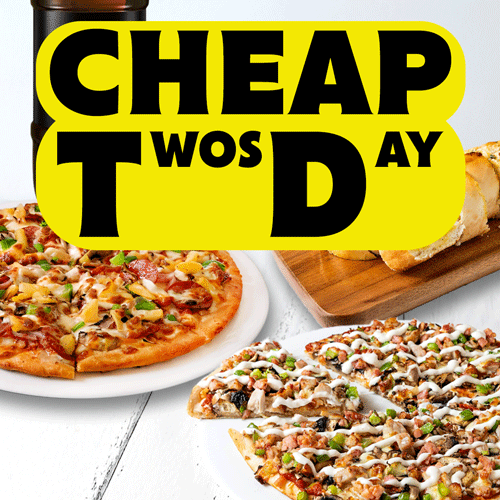 Cheap Twos Day$30Any 2 Large Pizzas For $15 eachAvailable day: Tuesday